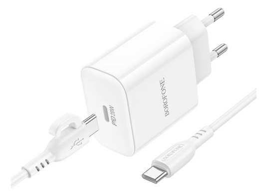 Cargador Adaptador Borofone 20w + Cable C BA81A Blanco