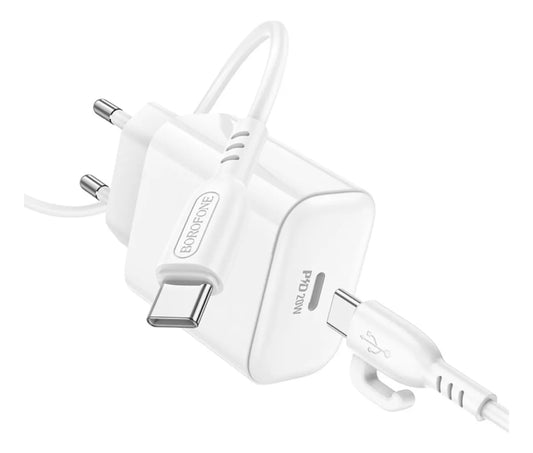Cargador Adaptador Borofone 20w + Cable C BA81A Blanco